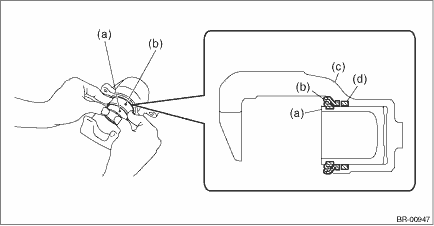 (a) | Pin boot | (b) | Lock pin - rear brake or guide pin - rear brake | (c) | Grease applied area |