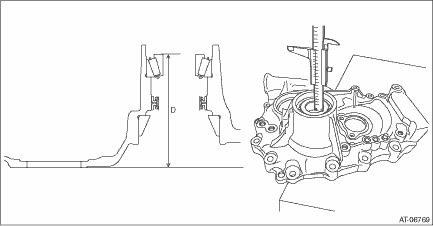 (7) Measure the height “D” from the end face of the rear roller bearing inner race to the surface plate.