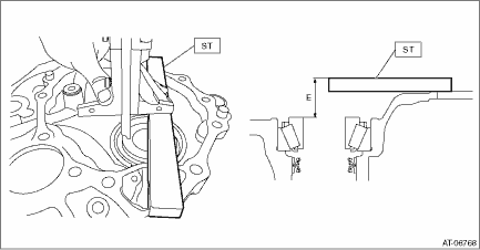(9) Measure the depth “E” from the end face of the front roller bearing inner race to the end face of the ST.