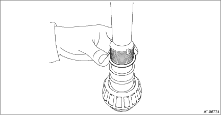 • Apply differential gear oil to the threaded portion of the drive pinion shaft.