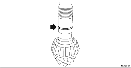 Apply differential gear oil to the threaded portion of the drive pinion shaft.