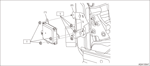 (1) | Radar sensor (master & slave) | (2) | Radar bracket | Tightening torque: N·m (kgf-m, ft-lb) | |
