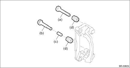 (a)  | Guide pin - rear brake (black)  | (c)  | Lock pin - sleeve  | (d)  | Pin boot  |
