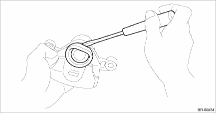 (2) Using an air gun, gradually apply compressed air via the brake hose installation hole to push out the piston - disc brake.