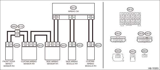 4) Disconnect connector (AB24) from side airbag module (RH).
