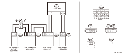 • Side airbag harness (RH) is shorted to power supply.