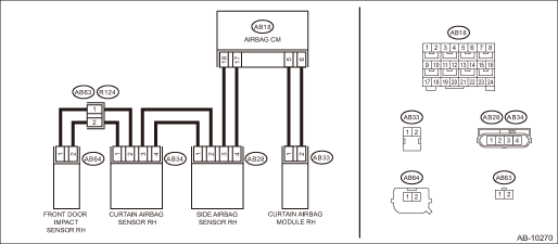 3) Disconnect connector (AB24) from side airbag module (RH).