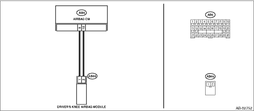 Diagnostic Chart with Trouble Code > DTC B1862 SHORT IN DRIVER’S KNEE AIRBAG (TO GROUND)">Go to Step 2.