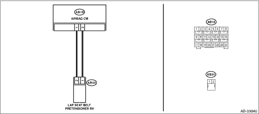 2) Disconnect the connector (AB30) from lap seat belt pretensioner (RH).