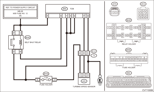 • Judge as NG if there is no input signal from the turbine speed sensor, while the primary speed sensor on the same shaft has the input signal with the forward/reverse clutch engaged.