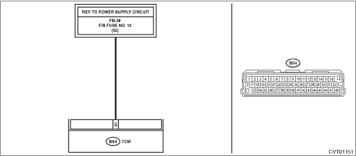 • Open circuit or short circuit to ground of harness between TCM connector and ignition switch connector (IG relay 1 connector for model with push button start)