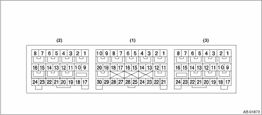 • Terminal numbers in airbag control module connector are shown in the figure.
