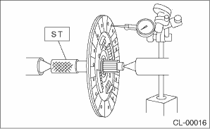 If deflection exceeds the specified value at the outer circumference of the facing, replace the clutch disc.