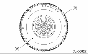 1. If there is damage or defectiveness in the facing sliding surface or ring gear, replace the flywheel.