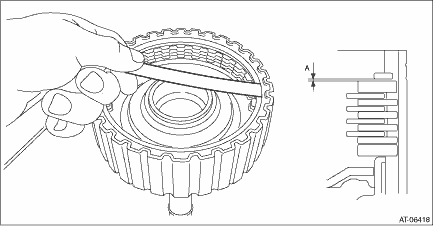 2. When clearance “A” exceeds the limit for use, replace the drive plate and driven plate as a set, and select the pressure plate within the initial specified value.