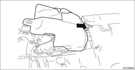 After the transmission case cover (large) is installed, insert the transmission case cover (small) between the transmission case cover (large) and the transmission to install.