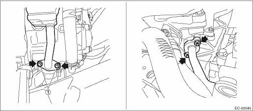 2. Temporarily tighten the bolts securing the EGR cooler to the EGR control valve and the cylinder head RH, and tighten in numerical order.