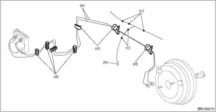 (2) Remove the brake pipe assembly (a) from the pipe clip (d).