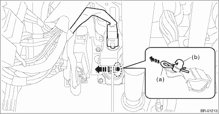 12. Remove the snap pin (a) and clevis pin (b), and remove the operating rod from the brake pedal.