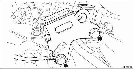 8. Remove the air breather hose from the pitching stopper bracket, and then remove the pitching stopper bracket and transmission radio ground cord.