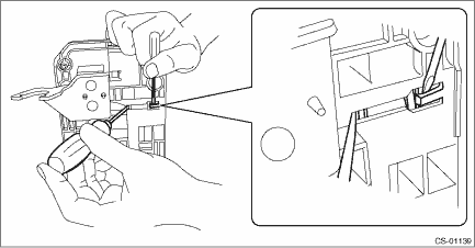 5. Remove the terminal of the solenoid unit using a flat tip precision screwdriver with a tip width of 1.3 mm (0.05 in) or less, KTC connector terminal tool ECC-1T or equivalent.
