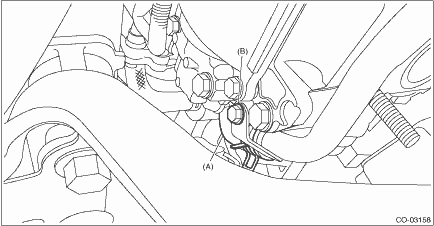 4. Disconnect the water hose (A) from the water pipe assembly RH, and remove the bolt (B) securing the water pipe assembly RH to the cam carrier RH.