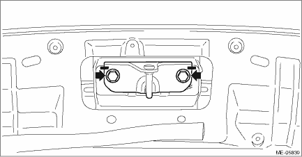 1. Open the front hood, and make alignment marks (A) on both the front hood and the front hood striker by using a marker pen.