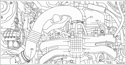 9. Loosen the clamp (C) which secures the throttle body to the air intake boot.