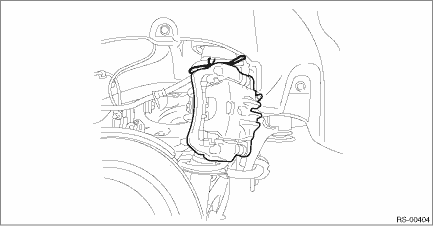 (2) Prepare wiring harnesses etc. to be discarded, and suspend the caliper body assembly from the strut assembly.