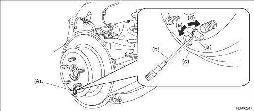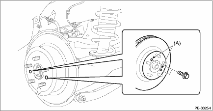 (2) If the disc rotor is not removed after performing above step, screw in an 8 mm (0.31 in) bolt to the threaded part (A) of the disc rotor, and remove the disc rotor.