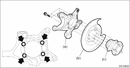 (a) | Rear axle housing | (b) | Rear brake back plate | (c) | Rear hub unit bearing |