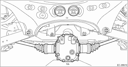 • Do not lower the rear differential excessively. Doing so may add extra load to the drive shaft or cause the falling-off of the drive shaft.