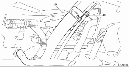 11. Disconnect the intake hose (C) from the connector.