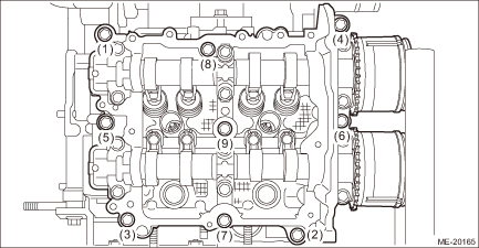10. Loosen the bolts holding the cam carrier LH equally, a little at a time in numerical sequence as shown in the figure and remove the cam carrier LH.