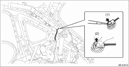 (2) Disconnect the curtain airbag module connector. Airbag Connector > PROCEDURE">